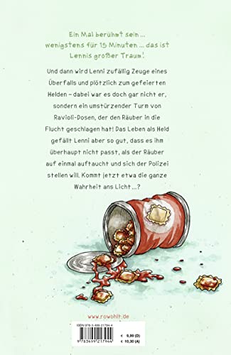 Einzelheiten: Pressestimmen Katja Reider erzählt eine lustige, aber auch spannende Geschichte. Zusammen mit den Bildern von Dominik Rupp entstand eine gelungene Krimi-Komödie. ― WAZ Am besten fand ich den Humor des Buches und die witzigen Verwirrungen. -- William Bickel, 10 Jahre ― Badische Zeitung Hier greift alles ineinander wie die Zahnräder eines Uhrwerks, langweilig wird es nie: Ein Ereignis jagt das nächste. (...) In ihrer authentischen Sprache und Lebenswelt können sich Leser wiederfinden und von Anfang bis Ende mitfiebern. Ein flotter Roman, der einfach Spaß macht! ― Eselsohr Zwischen naiven Kinderträumen und Verrücktheiten (...) bis zu der Erkenntnis, dass man Verantwortung für das, was man sagt und tut, übernehmen muss, ist alles zielgruppengerecht aufbereitet. ― TITEL Kulturmagazin In dieser witzigen Krimigeschichte geht es von Anfang bis Ende turbulent zu. (...) Absolut empfehlenswert! ― kidsbestbooks.com Kurzbeschreibung Ein Mal berühmt sein ... wenigstens für 15 Minuten ... das ist Lennis großer Traum! Und dann wird Lenni zufällig Zeuge eines Überfalls und plötzlich zum gefeierten Helden – dabei war es doch gar nicht er, sondern ein umstürzender Turm von Ravioli-Dosen, der den Räuber in die Flucht geschlagen hat! Das Leben als Held gefällt Lenni aber so gut, dass es ihm überhaupt nicht passt, als der Räuber auf einmal auftaucht und sich der Polizei stellen will. Kommt jetzt etwa die ganze Wahrheit ans Licht ...? Mit zahlreichen s/w-Illustrationen von Dominik Rupp Über den Autor und weitere Mitwirkende Katja Reider, 1960 in Goslar geboren, studierte Germanistik und Publizistik, arbeitete zunächst in einer PR-Agentur und war anschließend Pressesprecherin eines großen Jugendwettbewerbs, bevor sie zu schreiben begann. Sie hat bereits mehrere Hörspiele und über 150 Kinder- und Jugendbücher veröffentlicht. Katja Reider lebt mit ihrem Mann und zwei Kindern in Hamburg.