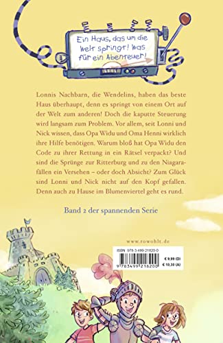 Einzelheiten: Kurzbeschreibung Ein Haus, das um die Welt springt! Was für ein Abenteuer! Lonnis Nachbarn, die Wendelins, haben das beste Haus überhaupt, denn es springt von einem Ort auf der Welt zum anderen! Doch die kaputte Steuerung wird langsam zum Problem. Vor allem, seit Lonni und Nick wissen, dass Opa Widu und Oma Henni wirklich ihre Hilfe benötigen. Warum bloß hat Opa Widu den Code zu ihrer Rettung in ein Rätsel verpackt? Und sind die Sprünge zur Ritterburg und zu den Niagarafällen ein Versehen - oder doch Absicht? Zum Glück sind Lonni und Nick nicht auf den Kopf gefallen. Denn auch zuhause im Blumenviertel geht es rund. Band 2 der spannenden Serie Mit s/w-Illustrationen von Cathy Ionescu Über den Autor und weitere Mitwirkende Marikka Pfeiffer studierte Musikpädagogik, Psychologie und Geschichte und arbeitete mit Kindern und Jugendlichen an Theaterstücken und Filmen. Sie hat einen erwachsenen Sohn und lebt heute in der Nähe von Berlin, wo sie oft durch verwunschene Parks und Gärten streift. Dabei hat sie auch Lowinda Löwenzahn getroffen, denn sie glaubt fest an Feen und Wunderwesen. Cathy Ionescu hat in Münster und Seoul Design mit Schwerpunkt Illustration studiert. Sie lebt in Münster, wo sie als freiberufliche Illustratorin in der Ateliergemeinschaft Hafenstraße 64 arbeitet.Am liebsten zeichnet sie dicke Ponys und edle Rösser, aber genauso gerne Präriehühner mit Hang zu Marmelade.