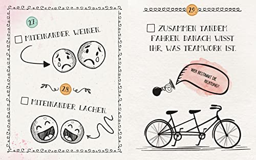 Einzelheiten: Feiert eure Freundschaft! • Liebesbeweis: Das Geschenk für wirklich beste Freundinnen • 150 Ideen: Gemeinsam durch dick und dünn • Tu Gutes und rede darüber - und zwar mit der besten Freundin • Wie Pech und Schwefel: Die Bucket List der Freundschaft Dieses Buch ist für wirklich beste Freundinnen. Es birgt 150 aufregende Ideen und Herausforderungen, die eine Freundschaft noch enger, fröhlicher und einzigartiger machen. Zusammen Tandem fahren, Kirschkerne spucken, einander Trost sein. Ein Duett singen oder am Strand tanzen. Das ist die Bucket List der Freundschaft. Sie ist zum Kichern, Erleben, Abhaken und Spüren: Das Beste aller Leben passiert mit einer Freundin an der Seite!