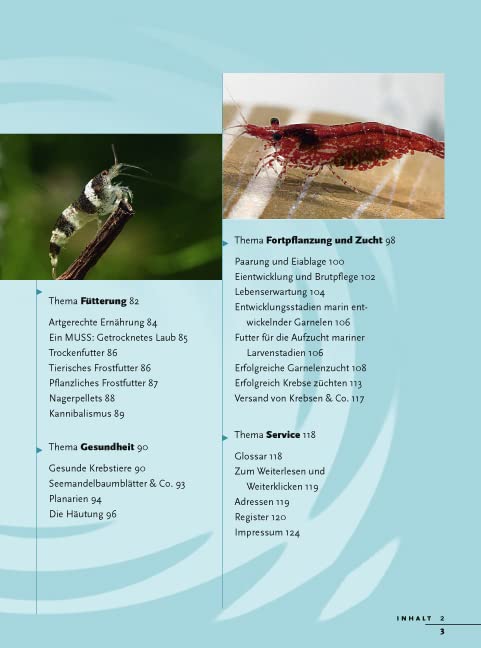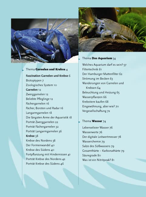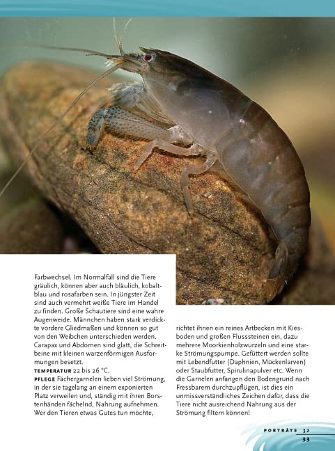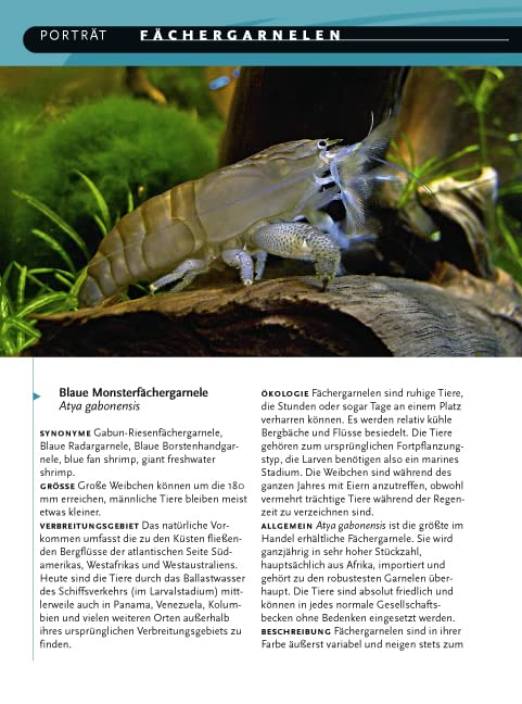 Einzelheiten: Garnelen in allen Farben – fast durchsichtig, bunt gestreift oder leuchtend rot, dazu knallblaue oder quietschbunte Krebse. Immer mehr Arten werden importiert, gehalten und gezüchtet. Doch wie hält man die Exoten gesund und farbenfroh? Dieser Ratgeber stellt die häufigsten Arten vor und erklärt die richtige Pflege der quirligen Newcomer. Checklisten ermöglichen eine schnelle Übersicht über Vergesellschaftung, Ernährung und Fortpflanzungsverhalten.