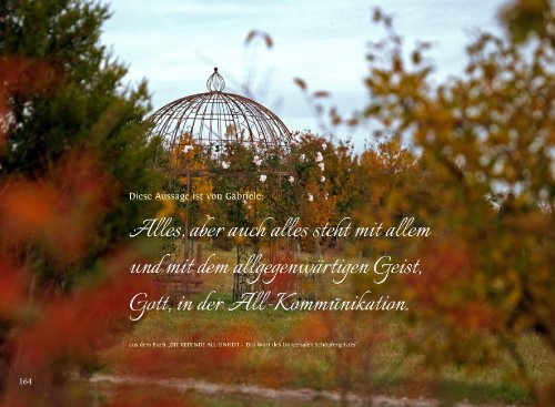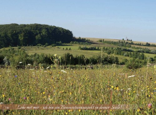 Einzelheiten: Lassen Sie sich von der Vielfalt und Schönheit der Natur berühren! Dieser Bildband lädt dazu ein, die Schönheit und Vielgestaltigkeit der Schöpfung auf sich wirken zu lassen und sich selbst als Teil der Schöpfung zu begreifen. Es ist der freie Geist, der All-Geist, der alles durchwirkt und der als Lebensodem jedes Wesen durchpulst. Daher strahlt uns das Göttliche durch jeden Baustein der Natur zu. Lebe mit mir - Ich bin ein Bewusstseinsaspekt in deiner Seele. Die Motive dieses Buches stammen von dem Land des Friedens, das die Internationale Gabriele-Stiftung im Herzen Deutschlands aufbaut. Was ist das Besondere an diesem Landstrich? Auf dem Land des Friedens haben Tiere das gleiche Lebensrecht wie wir Menschen. Schafe, Rinder oder Gänse dürfen in Würde alt werden. Frei lebende Tiere wie Rehe, Hasen oder Vögel erhalten wieder ihren ursprünglichen Lebensraum zurück. So ist in wenigen Jahren ein Biotopverbund von überwältigender Schönheit entstanden. Waldstücke, Feuchbiotope, Wiesen und Streuobstwiesen liegen malerisch in einer hügeligen Landschaft, verbunden durch kilometerlange Heckenzüge, in denen Wildtiere Schutz und Nahrung finden. Was ins Auge fällt: Mit dem schrittweisen Aufbau dieses Biotopverbunds hat sich eine Artenvielfalt eingestellt, die ihresgleichen sucht. An die 500 Pflanzenarten wurden bei einer wissenschaftlichen Erhebung gezählt. Und da jede Pflanze ganz unterschiedlichen Tieren als Lebensgrundlage dient, ist auch die Vielfalt an Schmetterlingen, Vögeln und anderen Tierarten entsprechend reichhaltig. So zeigt sich auf dem Land des Friedens, wie Pflanzen und Tiere eine Einheit bilden und wie auch wir Menschen wieder Teil dieser Einheit werden können - indem wir die Natur lieben lernen, sie schützen und bewahren. Helfen Sie mit? Lassen Sie die Pflanzen und Tiere auf den ca. 200 Seiten auf sich wirken. Sie möchten uns eine Ahnung vermitteln - von der großen Einheit allen Seins.