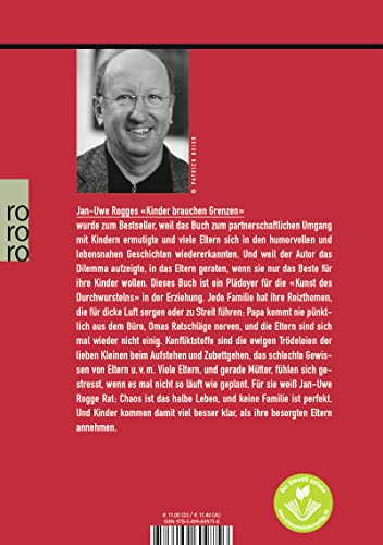 Einzelheiten: Jan-Uwe Rogges «Kinder brauchen Grenzen» wurde zum Bestseller, weil das Buch zum partnerschaftlichen Umgang mit Kindern ermutigte und viele Eltern sich in den humorvollen und lebensnahen Geschichten wiedererkannten. Und weil der Autor das Dilemma aufzeigte, in das Eltern geraten, wenn sie nur das Beste für ihre Kinder wollen. Dieses Buch ist ein Plädoyer für die «Kunst des Durchwurstelns» in der Erziehung. Jede Familie hat ihre Reizthemen, die für dicke Luft sorgen oder zu Streit führen: Papa kommt nie pünktlich aus dem Büro, Omas Ratschläge nerven, und die Eltern sind sich mal wieder nicht einig. Konfliktstoffe sind die ewigen Trödeleien der lieben Kleinen beim Aufstehen und Zubettgehen, das schlechte Gewissen von Eltern u.v.m. Viele Eltern, und gerade Mütter, fühlen sich gestresst, wenn es mal nicht so läuft wie geplant. Für sie weiß Jan-Uwe Rogge Rat: Chaos ist das halbe Leben, und keine Familie ist perfekt. Und Kinder kommen damit viel besser klar, als ihre besorgten Eltern annehmen.