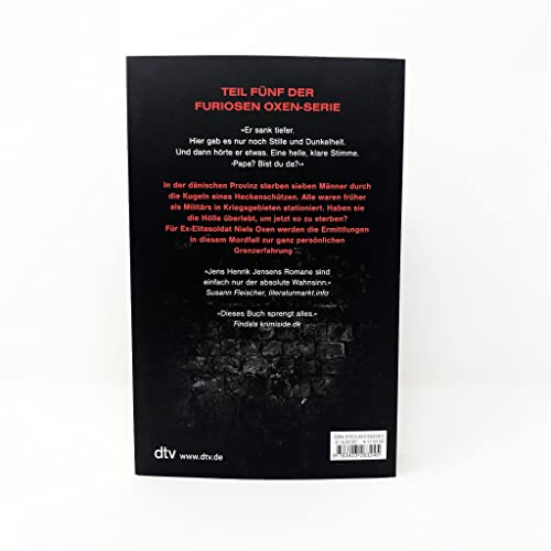 Einzelheiten: Über Niels Oxen bricht die Nacht herein … Niels Oxen kämpft um das, was ihn ausmacht: seine Menschlichkeit. Sein dunkelster Fall. Teil fünf der furiosen Oxen-Serie Alles könnte gut werden: Flashbacks und Albträume quälen Niels Oxen seltener und er denkt darüber nach, was ihm in seinem Leben fehlt: Beziehungen. Und Liebe. Da bittet Ex-PET-Chef Mossmann ihn um Unterstützung. In einer verlassenen Kiesgrube sind die Leichen ermordeter Veteranen gefunden worden. Bedroht das Land ein Sniper? Unachtsam geworden, wird Oxen verschleppt – und dort, wo er erwacht, gibt es nur Dunkelheit … Für Leser:innen von Jussi Adler-Olsen, Stieg Larsson und Fans von skandinavischen Krimis und Thrillern. »Die Oxen-Serie von Jens Henrik Jensen ist einfach großartig!« Saarländischer Rundfunk »Oxen hat über die Jahre immer mehr an Charakter gewonnen. In vielerlei Hinsicht ist Oxen inzwischen bedeutsamer als Jensen. Aber das nehme ich ihm nicht übel – im Gegenteil, es ist das schönste Kompliment für mich.« Jens Henrik Jensen Alle Bände der Niels-Oxen-Reihe: Band 1: OXEN. Das erste Opfer Band 2: OXEN. Der dunkle Mann Band 3: OXEN. Gefrorene Flammen Band 4: OXEN. Lupus Band 5: OXEN. Noctis Band 6: OXEN. Pilgrim Von Jens Henrik Jensen sind bei dtv außerdem die skandinavischen Thriller-Serien SØG und EAST erschienen.