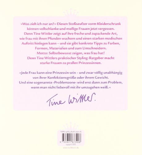 Einzelheiten: Amazon.de Tine Wittler, die Königin der Kurven, stylt nicht nur ganze Häuser höchst erfolgreich um, sondern unterzieht auch formgewaltige Geschlechtsgenossinnen einem amüsanten und vielversprechenden Relaunch. Denn pfundig kann durchaus chic sein, wie Frau Wittler selbst glaubhaft vorlebt. Pralle Prinzessinnen fängt dort an, wo es bei jeder Frau ans Eingemachte geht. Und zwar unabhängig von der Kleidergröße. Auf die Einstellung zu sich selbst kommt es an. Wer sich und sein rundes Leben nicht liebt, der wird nur schwerlich attraktiv wirken. Doch wer seine körperlichen Vorzüge und Nachteile kennt, kann sich auch richtig gut anziehen. Und da spielen ein paar Pfunde mehr oder weniger wirklich keine Rolle. Endlich ist also Schluss mit dem Vorurteil, dass Mode nur in Größe 38 funktioniert. Vom Figurtyp bis zur Farbwahl, von der Unterwäsche bis zu T-Shirts, Röcken, Hosen oder Blusenformen gibt die bekannte Moderatorin die perfekten Styling-Tipps für starke Frauen. Hübsche und anschauliche Illustrationen stellen gegenüber, was der Figur schmeichelt und was gar nicht geht, absolute "No Gos" nennt Tine Wittler unverblümt beim Namen. Hüfthosen müssen schließlich nicht in jedem Fall sein. Den Spaß und die Freude an der Mode nimmt man der Autorin gerne ab. Schließlich steht sie selbst in Sachen fülliger Schönheit als gutes Beispiel in der Öffentlichkeit. Und das mit Konfektionsgröße 50/52. Der Ratgeber macht jeder Frau Mut, ihren individuellen Stil zu finden und sich als wahre Prinzessin zu fühlen. Bei wem es allerdings von vornherein mit dem Selbstbewusstsein hapert, der wird mit diesem Buch wahrscheinlich auch nicht glücklicher. Ein klares Ja also zu üppigen weiblichen Formen. Schließlich sind auch starke Frauen super "sexy, sexy, sexy"! Sandra-Kathrin Buck Pressestimmen seufzer vorm Kleiderschrank können mollige Frauen nun getrost vergessen. Denn Tine Wittler, die Königin der Kurven, stylt nicht nur Häuser erfolgreich um, sondern zeigt in Pralle Prinzessinnen anhand vieler Tipps, wie auch Frauen von Format sich modisch in Szene setzen können." (Frau im Spiegel, 21. Mai 2008) "Pfundige Tipps für pralle Frauen" (WOCHEaktuell, 12. April 2008) "Das sind praktische Überlebenstipps einer starken Frau, die sich die Freiheit nimmt, Mode zu mögen und trotzdem ihr eigenes Ding zu machen. Und dabei selbst der attraktive Beweis dafür ist, dass man sich mit Mode wunderbar beschäftigen kann, ohne sich irgendeinem Diktat zu unterwerfen." (Buchjournal 2/2008, Ira Panic) Über den Autor und weitere Mitwirkende Tine Wittler, 1973 in Rahden/Westfalen geboren, ist Moderatorin und Bestsellerautorin. Sie studierte Kultur- und Kommunikationswissenschaften, arbeitete als freie Autorin für Presse, Hörfunk und Fernsehen und war seit 1998 Redakteurin für verschiedene TV-Formate. 2002 erschien ihr Debütroman Die Prinzessin und der Horst, der sich glänzend verkaufte. Es folgten die Roman Horst Go Home! und Parallelwelt (beide 2003) sowie Irgendwas is immer (2007). Seit Oktober 2003 moderiert Tine Wittler die erfolgreiche Sendung Einsatz in 4 Wänden (RTL), die 2004 den Deutschen Fernsehpreis verliehen bekam. Im Herbst 2005 brachte sie ihre eigene Mode- und Wohnaccessoires-Kollektion 'prallewelt.com auf den Markt. Tine Wittler lebt seit 1995 in Hamburg-Ottensen. Leseprobe. Abdruck erfolgt mit freundlicher Genehmigung der Rechteinhaber. Alle Rechte vorbehalten. Liebe Leserin! Liebe pralle Prinzessin! Mädels, die in diesem unserem Lande eine 4 oder gar eine 5 als erste Ziffer ihrer Konfektionsgröße tragen, haben es nicht leicht - und das nicht nur, weil sie per se schwerer sind als ihre schlanken Mitstreiterinnen! Denn zusätzlich zum meist eh schon vorhandenen Knacks im Selbstbewusstsein kommt noch ein weiterer, elementarer Punkt hinzu: der tägliche Frust im Umgang mit Mode. Für eine große Größe wirklich schöne Teile zu finden, die den eigenen Körperformen und dem eigenen Geschmack gerecht werden, kann zur Lebensaufgabe mutieren. Dabei haben wir doch eigentlich v