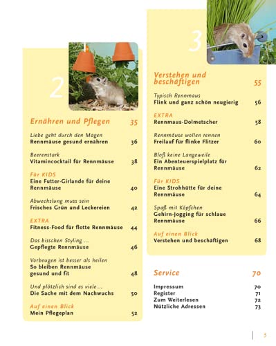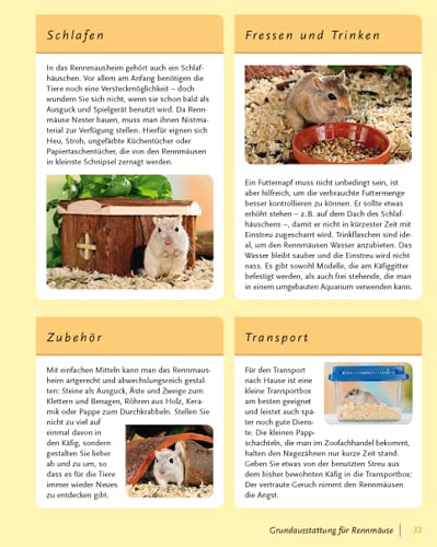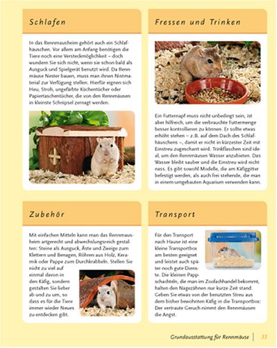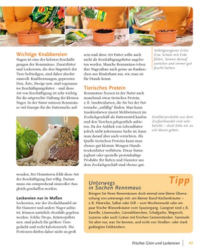 Einzelheiten: Rennen, buddeln, nagen – das ist es, was Rennmäuse lieben! Anja Steinkamp gibt zahlreiche Tipps und Anregungen zur art-gerechten Beschäftigung der Wüstenflitzer. So wird das Zusammenleben mit den kleinen Nagern nie langweilig und im Rennmausheim geht die Post ab. Auch Haltung, Ernährung und Pflege sind mit den übersichtlichen Erklärungen in diesem Buch schnell gelernt und schon kann der Spaß beginnen.