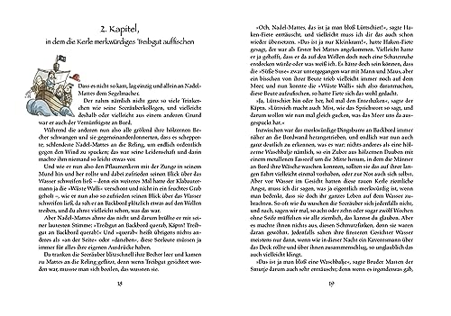 Einzelheiten: In "Seeräubermoses" von Kirsten Boie finden wir uns mitten in einem mitreißenden Abenteuer wieder, das auf den stürmischen Wellen des Meeres beginnt. In einer hölzernen Waschbalje, auf dem wilden Meer treibend, wird das Baby Moses von Käptn Klaas und seiner Seeräubercrew gefunden und aufgenommen. Moses, der rasch zum festen Bestandteil der Mannschaft wird und in den Seeräubern eine neue Familie findet, sieht sich bald einer gewaltigen Herausforderung gegenüber: Er wird von Olle Holzbein, dem Erzfeind von Käptn Klaas, entführt. Olle Holzbein fordert die Schatzkarte zum Blutroten Blutrubin des Verderbens als Lösegeld und scheint zudem Geheimnisse über Moses' wahre Herkunft zu kennen. Mit der Hilfe seines neuen Freundes Dohlenhannes gelingt Moses die Flucht. Gemeinsam begeben sie sich auf die Suche nach dem legendären Rubin und vielleicht auch nach der Wahrheit über Moses' eigene Vergangenheit. Fesselndes Abenteuer: Eine spannende Piratengeschichte, die junge Leserinnen und Leser ab 6 Jahren von der ersten bis zur letzten Seite in ihren Bann zieht. Lehrreich und unterhaltsam: Bietet eine wunderbare Mischung aus Spannung, Humor und lehrreichen Momenten. Familienfreundlich: Ideal zum Vorlesen für die ganze Familie, fördert das gemeinsame Erlebnis und die Diskussion über die Geschichte. Positive Botschaften: Vermittelt Werte wie Mut, Freundschaft und die Bedeutung von Familie – sowohl der, in die man hineingeboren wird, als auch der, die man sich wählt. Bezaubernde Illustrationen: Mit stimmungsvollen Bildern, die die Atmosphäre der Seefahrt und das Abenteuer lebendig werden lassen. Inklusive Piratenlexikon: Ein unterhaltsames Extra, das spielerisch Wissen über das Seeräuberleben vermittelt. Von Kritikern gelobt: Ein von Kritikern gefeiertes Buch, das als moderner Klassiker der Kinderliteratur gilt. Breite Zielgruppe: Ansprechend für eine breite Altersgruppe, empfohlen für Kinder ab 6 Jahren, aber auch für ältere Kinder und Erwachsene interessant. Hochwertige Ausstattung: Qualitativ hochwertige Verarbeitung des Buches, das auch als schönes Geschenk geeignet ist.