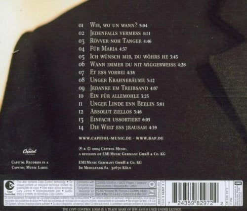 Einzelheiten: Amazon.de "Da waren's nur noch fünf": Nach dem BAP-Jahr 2002 ist die Besetzung für das neue Studioalbum Sonx schon wieder zur reinen Männertruppe geschrumpft. Sängerin Sherryl Hackett ist nicht mehr dabei, aber auch Gitarrist Jens Streifling nicht, wenn auch noch als Koautor von "Et ess vorbei" (nicht nur ein Liebesabschiedslied) und "Einfach ussortiert" (nicht nur eine Ballade über Arbeitslosigkeit) präsent, und eben auch als Textverarbeitungsthema. Seine Betroffenheit über den Ausstieg des Kollegen formuliert Niedecken ziemlich persönlich mit "Wann immer du nit wiggerweiß". Demgemäß greift er bei den geradlinigen Rock-Stücken auch wieder auf Dylan und die Rolling Stones zurück. Die thematisiert er mit "Absolut ziellos" ganz direkt -- das Stones-Album Some Girls als Erinnerung an frühere Freunde und wilde Zeiten. Erinnerungs- und Abschiedsthemen ziehen sich durch fast alle Stücke, sei es Liebe wie auf dem stark melodischen Ohrwurm "Wie, wo un wann?" oder Band-Mitglieder in "Jedenfalls vermess" mit Stones-Riff oder aber jene geplatzte DDR-Tournee 1984 "Unger Linde enn Berlin". Und natürlich wieder Bilder über Köln: "Ein für allemohle", eine kleine private Studie über die Bombennacht im Mai 1942, und die Hommage an historische Fotos "Unger Krahnebäume". Verlustängste bestimmen auch den ironischen Midlife-Blues im Pianostil von Randy Newman "Die Welt ess jrausam" -- doch laut Niedecken stirbt die Hoffnung zuletzt. Die Musik von BAP baut sowieso auf. --Ingeborg Schober