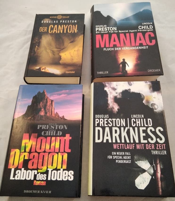 Artikel Hinweis: ACHTUNG!!!! ANGEBOT ABWEICHEND!!! 4 folgende Preston Bände (Teilweise mit Lincoln Child) 1) Mount Dragon Labor des Todes (GB) 2) Der Krater (TB) 3) maniac (TB) 4) Der Canyon (TB) MInimale Gebrauchsspuren Minimal nachgedunkelt