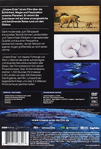 Einzelheiten: Produktbeschreibung Von der Arktis bis zur Antarktis zeigt der Film Landschaften und Tiere und Menschen der Erde. Als vor fünf Milliarden Jahren ein gigantischer Asteroid auf die Erdoberfläche stürzte, war der Aufprall so gewaltig, dass sich der Neigungswinkel der Erde verschoben hat. Und genau dieser kosmische Unfall war entscheidend für die Entstehung von Leben auf der Erde. Ohne diese Veränderung des Erdneigungswinkels gäbe es vermutlich weder die Vielfältigkeit der Landschaften noch die Jahreszeiten oder die Gegensätze von Hitze und Kälte: die Voraussetzung für die Entstehung von Leben auf der Erde überhaupt. In "Unsere Erde" begeben wir uns auf eine Reise um den Erdball. Dabei begegnen wir drei Muttertieren, die um das Überleben ihrer Jungen kämpfen. Mit den ersten Strahlen der Frühlingssonne erwacht in der Arktis eine Eisbärenfamilie: Wird es ihr gelingen, Nahrung zu finden, bevor das lebensnotwendige Eis schmelzen wird? Am anderen Ende der Welt, im Herzen der Kalahari-Wüste, versuchen eine Elefantenkuh und ihr Junges nach einer gefahrvollen Wanderung das lebensrettende Wasserloch zu erreichen. Auf unserem letzten Reiseabschnitt folgen wir einer Buckelwalmutter. Sie muss es schaffen, ihr Jungtier sicher vom Äquator bis zur Arktis zu bringen - eine Distanz von 6000 Kilometern. Keinem Film ist es zuvor gelungen, dieses Naturschauspiel in seiner ganzen epischen Vielfalt einzufangen und dabei das Leben der Hauptdarsteller - Eisbären, Elefanten und Buckelwale - so ergreifend zu erzählen. Bonusmaterial: Audiokommentar von Regisseur Mark Linfield (optional mit dt. Untertiteln); Ausschnitt aus dem Making of; Kinotrailer; Kinoteaser; Warnhinweise ages_6_and_over