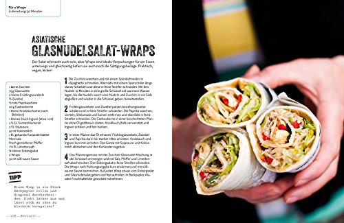 Einzelheiten: Vegane Küche ist so verbreitet wie nie. Dennoch ist es für Veganer immer noch schwierig außer Haus zu essen. Die Erfolgsautoren Jérôme Eckmeier und Daniela Lais zeigen daher, wie leicht vegane Küche to go geht: schnell zubereitet, kalt und warm ein Genuss und immer einfach zu transportieren. Über 100 Rezepte zum Mitnehmen von kleinen Snacks wie Müsliriegeln oder Grünkohl-Chips über Suppen und Salaten wie italienischer Brotsalat bis zu köstlichen Sandwiches und Burgern. Nicht zu vergessen deftige Gerichte zum Sattwerden, wie Spargel-Quiche oder gefüllten Süßkartoffeln. Hier ist für jeden etwas dabei! Auch dieser Titel wird wieder, wie Eckmeiers Vorgängertitel bereits, vom VEBU (Vegetarierbund Deutschlands) unterstützt.