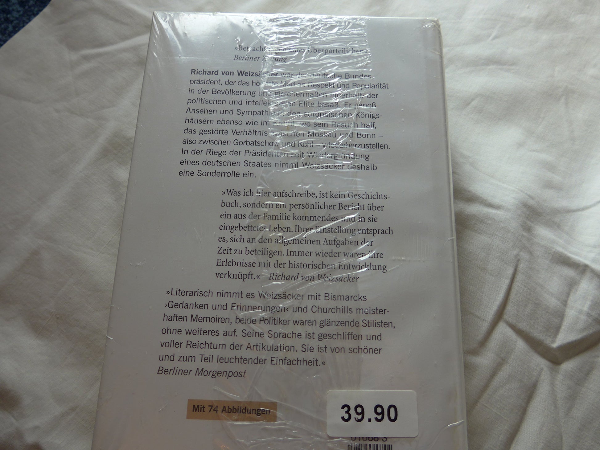 Einzelheiten: Richard von Weizsäcker, Vier Zeiten, Erinnerungen, 1. Auflage 1997, ISBN 3886805565