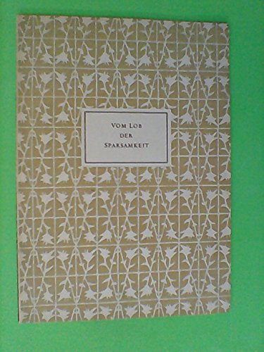 Vom Lob der Sparsamkeit. Gedanken, Sprüche, Erfahrungsweisheit aus dem Schatz der Jahrhunderte.
